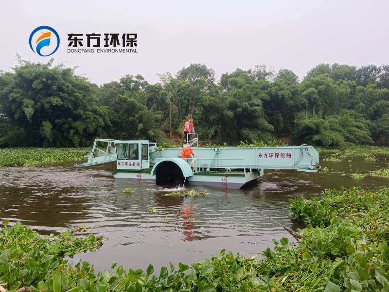 廣西玉林九洲江管委會(huì)購買的DFSHL110型全自動(dòng)水葫蘆打撈船